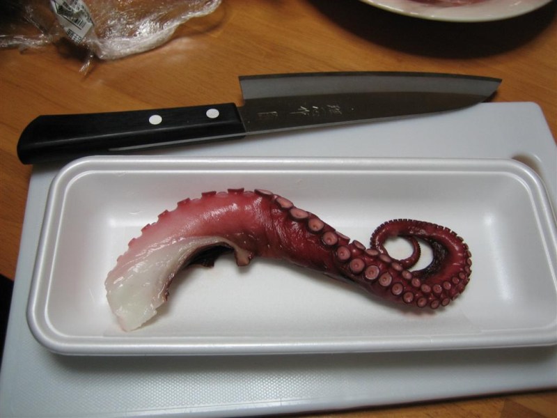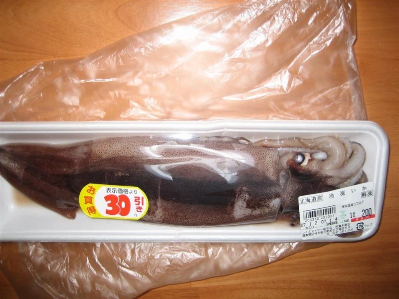 Then there’s the squid you can get for really cheap at the local supermarket. This particular squid–a whole squid, mind you–was only $1.50. Think of the value!!!