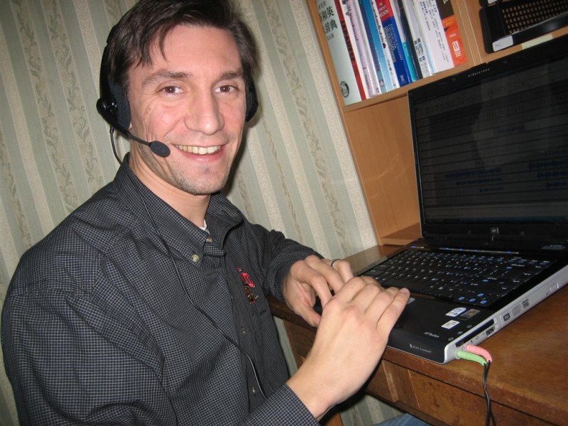 DJ Mike and his new recording studio (aka the desk)!