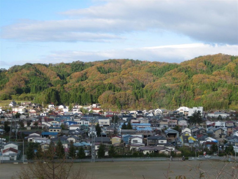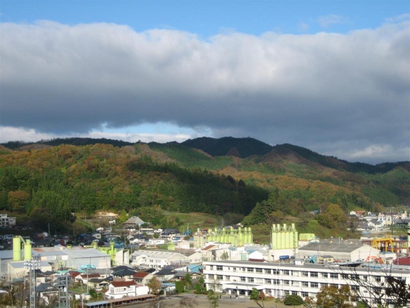 Today excepted, this whole past week here in Tamura has been a week of non-stop wonderful weather. In fact, it was so nice that I (Mike) couldn’t resist taking the digital camera to work and finally climbing up the hundred or so steps to the top of a local park to get a better look at the town of Takine. I spotted that park two weeks ago from the grounds of Takine Jr. High School, and I said to myself, “Self, that would be a great place to take some pictures!” So this past Wednesday I climbed up there twice–once in the morning and once in the afternoon, and got some great pictures of autumn here in this part of Japan. Allow me to give you the guided tour…
