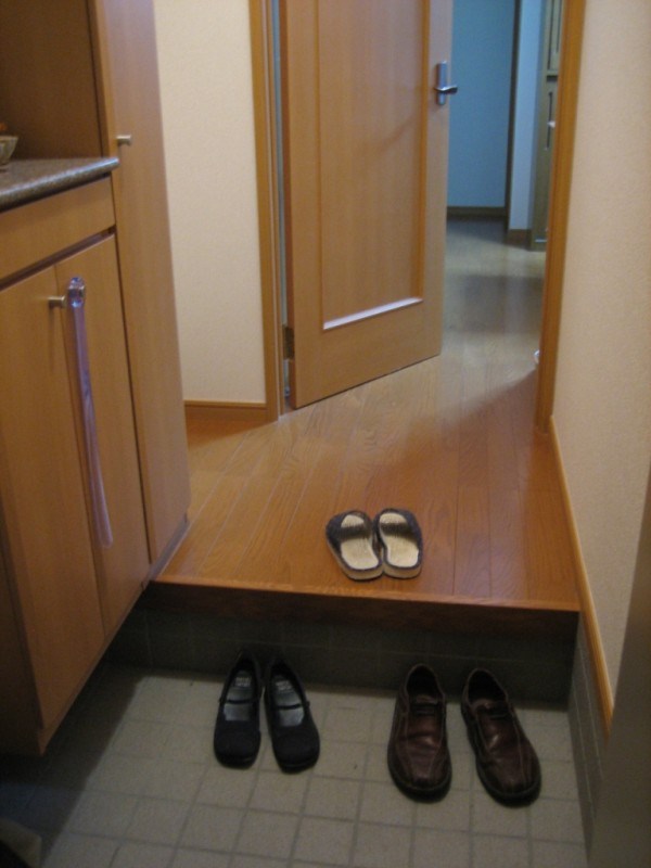 Come on in! You’ll want to leave your shoes in the genkan (entrance area), and step into a pair of comfy slippers. That’s a Japanese custom that we love to follow. It helps us to relax when we get home, and it keeps our floors a whole lot cleaner! If you were planning to stay for a good long while, we’d even find a place for your shoes in our handy shoe storage cabinet to your left. How are the slippers?