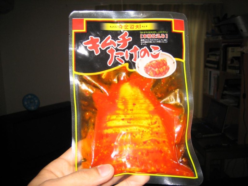 This little package was a bit of a disappointment. I thought it was a kimchee octopus, but when I got it home it turned out to be a kimchee bamboo shoot. Kimchee is actually Korean–it’s usually made from cabbage, has a strong, distinct odor, and is very, very spicy. So it was good–just not an “octopus” kind of good.
