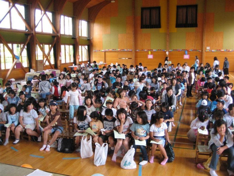 Today we had our long-awaited Easter Program, and praise God, it was a smashing success!!! Thanks to all of you who prayed for this event; everything went smoother than we ever thought possible. There were no accidents, no major spills of Easter Egg dye, nobody got lost, nobody got hurt, etc.–everything went off without a hitch. We also got some major help from the members of Funehiki Evangelical Church, which was a huge blessing. The gospel went out in many different ways, and seemed to be comprehensible to everyone. And everyone who came really seemed to be having a good time. So thanks for praying–it was a big hit!!!!