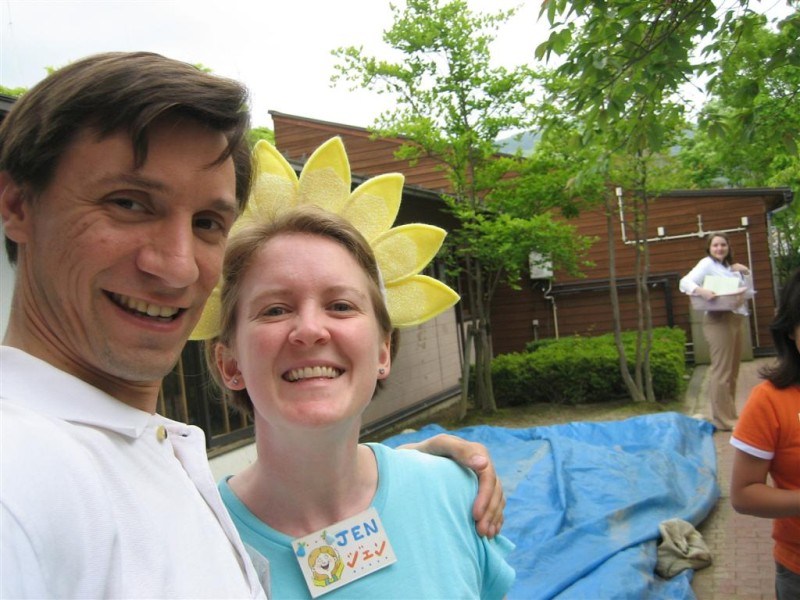 This was taken during the craft time. We had tables all around the perimiter of the room, so people were literally everywhere! Again, this could have been total chaos, but thanks to your prayers, things flowed quite nicely. Each one of us English teachers was at a different station, helping people make their crafts. Jen and I were both working at the cell-phone charm-making stations, trying as best as we could to explain things in Japanese. Thank goodness for the kids who ended up translating for us! 🙂
