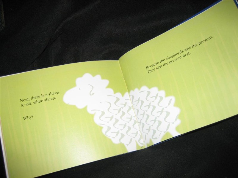 “Next, there is a sheep. A soft, white sheep. Why? Because the shepherds saw the present. They saw the present first.”