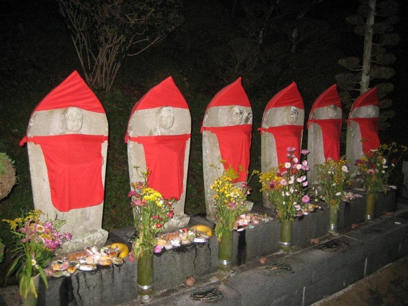 It was very sad to think that the very place where we were standing was the local epicenter of idolatry. (People in Japan pray to their ancestors, asking them to watch over their health, prosper their businesses, and generally take care of them.) We even saw offerings made to Buddhist idols that supposedly watch after children: