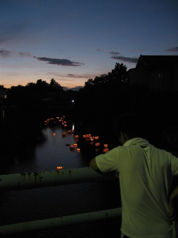 It was even sadder to see the temple’s dumpster jam-packed with the previous week’s offerings, rotting away and covered in bugs, and to think that next week, it would be jam-packed with another load of useless, decaying offerings. And finally later that week we went to the Tourounagashi, a traditional lantern-floating festival that suppsoedly marks the return of the spirits of departed ancestors to the netherworld: