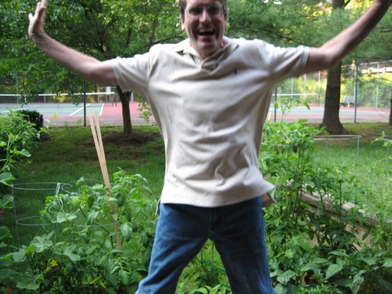 Here’s John rejoicing over the plants in his garden — this picture truly captures John’s passion for gardening!