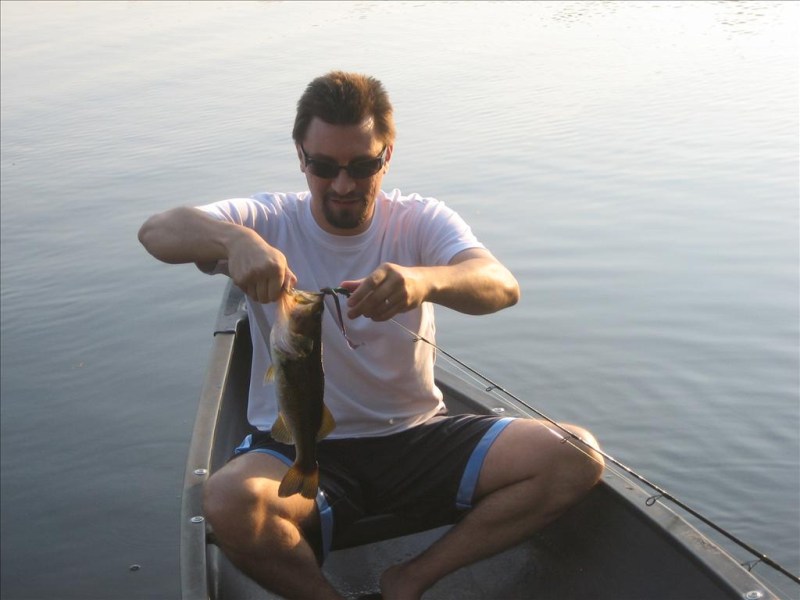 It was a few months ago that I landed my first bass off the dock of a small local lake called Lake Gem (which is part of the Canterbury Retreat Center , for those interested). Anyway, that was last year, and it took me over four months to land my next fish off of that same dock. But just last weekend, I went out in the canoe (with Jen nearby) and caught two fish in the same hour! Clearly, for bass fishing on that lake, using the canoe is the way to go. But there’s a catch (pun intended).
