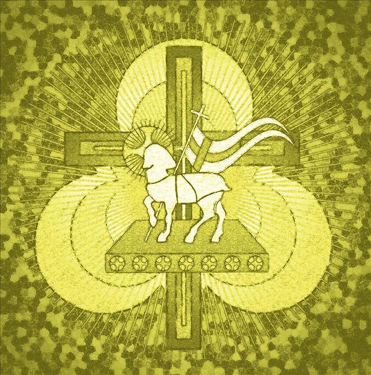 And finally, this last one is actually a serious piece of art. I know, usually my artwork is pretty goofy, but every so often I get inspired to make some “real” art–that is, art that has more to express than simply being funny in and of itself. This piece is called “Agnus Dei,” and if you’re familiar with Christian art history, you’ll know that there have been thousands of similar images created in the past. “Agnus Dei” is Latin for “Lamb of God,” and it refers to Jesus as the lamb who was sacrificed for us to take away our sins. The seven circular “seals” on the pedestal below the lamb are the seven seals in the book of Revelation, and the circular-triangle shape behind the cross is an ancient symbol for the Trinity–Father, Son, and Holy Spirit. The lamb, who is in the center of everything, is flying a flag with a cross on it as a sign of victory. Everything is about Him! Amen. On a more technical level, I wanted to make this image to look ancient, so I had to play around with all kinds of aging effects until I finally got the look I was searching for. All in all, I feel that this is my best piece so far–the current apex of my developing creative abilities.