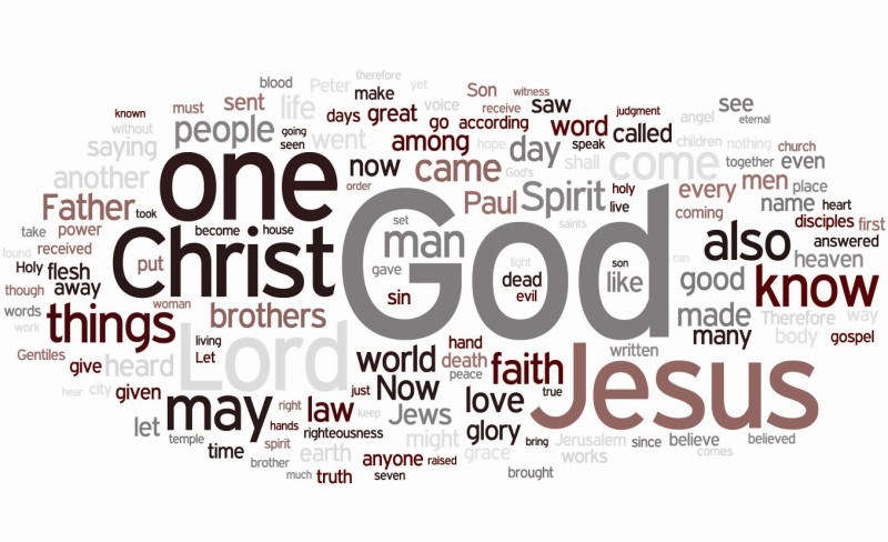 How cool is this??? The focus has shifted entirely away from the Law and turned to God and to the Lord Jesus Christ. That’s the gospel in a nutshell: Jesus fulfilled the Law for us, so we can be free to worship Him. The biggest words are almost readable together: “One Christ, Lord God Jesus.” Now tell me, isn’t this a great summary of the whole New Testament? And isn’t this pretty much the most awesome word cloud possible? (I actually set this image as my computer’s desktop–it just doesn’t get any better than this!)