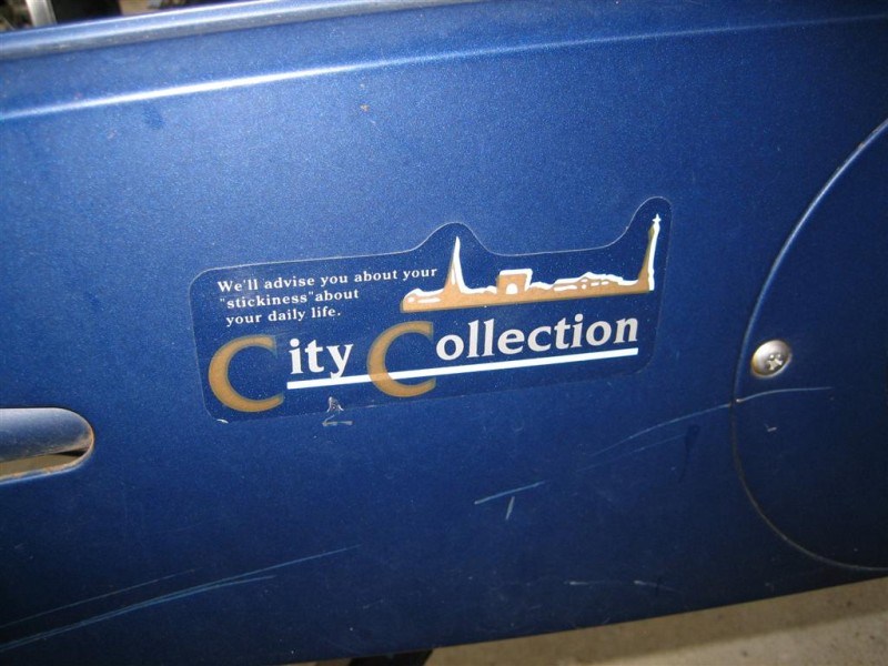 We actually found this one on the side of Jen’s bike. It says, “City Collection. We’ll advise you about your “stickiness” about your daily life.” We’re still scratching our heads about this one. Even if our daily lives were “sticky”, do you think we’d be going to a bicycle company to get it all sorted out? We think not. Hmmmmm…