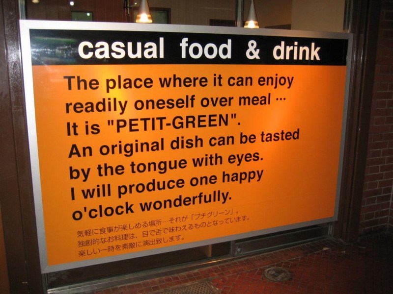 Now for a few more choice examples of Engrish that we’ve found around town:
