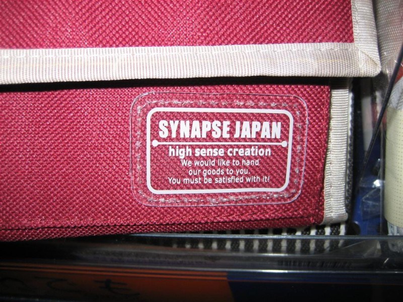 We found this one on a dollar-store wallet. Tell me that this isn’t the catchiest brand slogan you’ve ever heard: ” We would like to hand our goods to you. You must be satisfied with it! ” Now that’s good advertising.