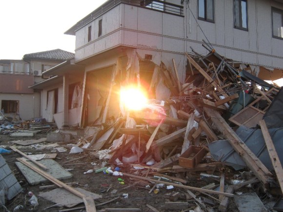 That evening, we drove to a different part of the city where the damage from the tsunami was more intense. There was a row of large, expensive houses that had been knocked wide open: