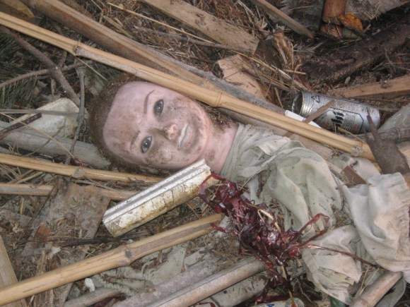 But most disturbing of all was the remains of a scarecrow that we found with an all-too human face laying serenely amidst the rubble:
