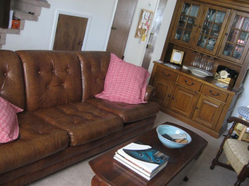 Come on in and rest for a spell in the living room. You can’t beat a pleather couch — huh? Easy to wipe up spills, and a cinch to dust. Plus, you may not be able to quite see from this picture, but that couch is REALLY long! Mike can stretch out full-length on that thing. Actually, it’s quickly become his absolute favorite place to study and do all those seminary reading assignments.